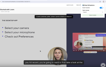 O Ninja ReCaptions é uma extensão do Chrome que permite traduzir legendas de vídeos do Loom em mais de 18 idiomas em tempo real. Com a capacidade de detectar automaticamente o idioma de origem, o usuário pode assistir a vídeos com legendas habilitadas e receber traduções instantâneas, tornando o conteúdo acessível a um público mais amplo. A extensão oferece uma interface limpa, com um overlay não intrusivo que exibe as traduções, além de permitir que os usuários alternem facilmente entre a tradução ativada ou desativada com um único clique.